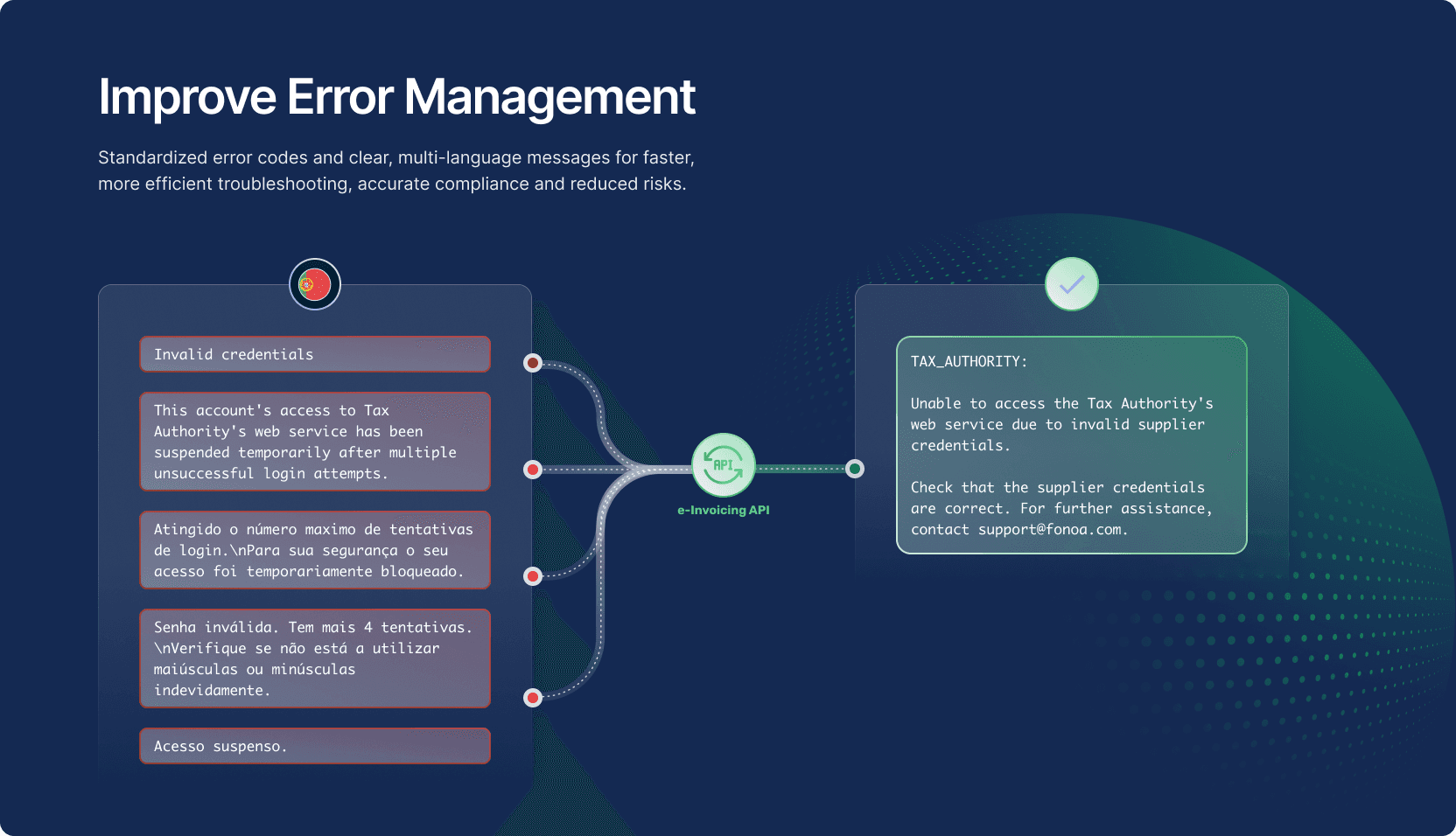 Standardised and improved errors messages across different Tax authorities and languages (+20).