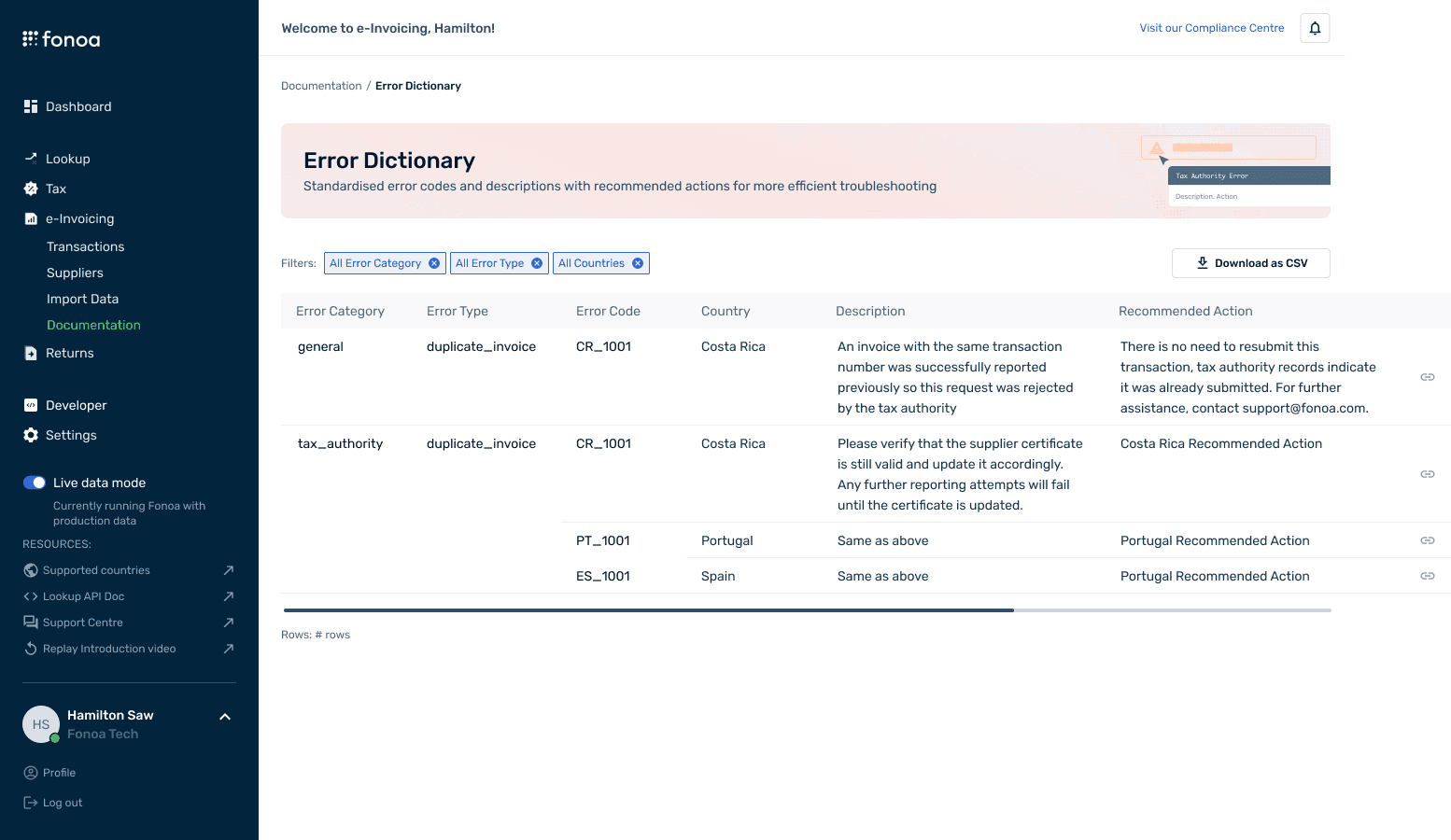 With actionable error descriptions and analytics, Tax Managers can address compliance errors swiftly and independently, minimizing delays and support dependency.